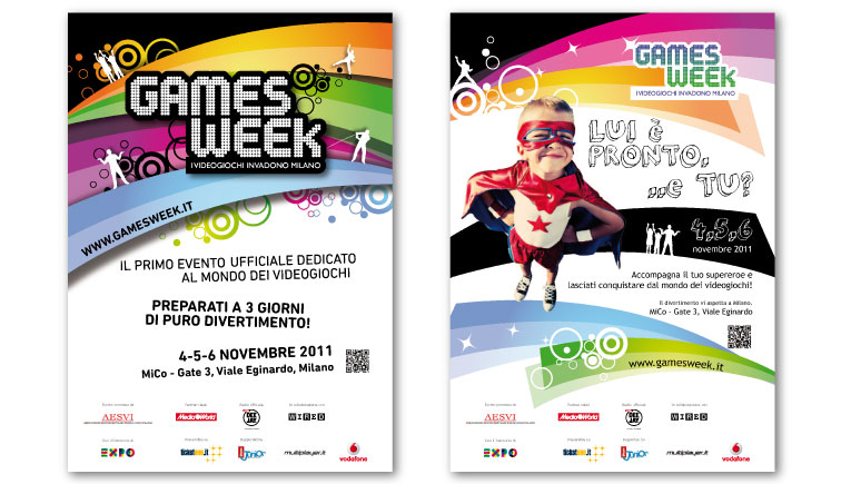 Games Week is the most important event in Italy devoted to the videogames world. AESVI, Association of Italian Publisher videogame software, had entrusted to us the project of the event identity. For Games Week, which will be held every year, we had designed a young, dynamic and engaging logo, used in all the communication tools. In order to support the first edition of the event, a massive advertising campaign was realised through different channels, reaching various audiences.